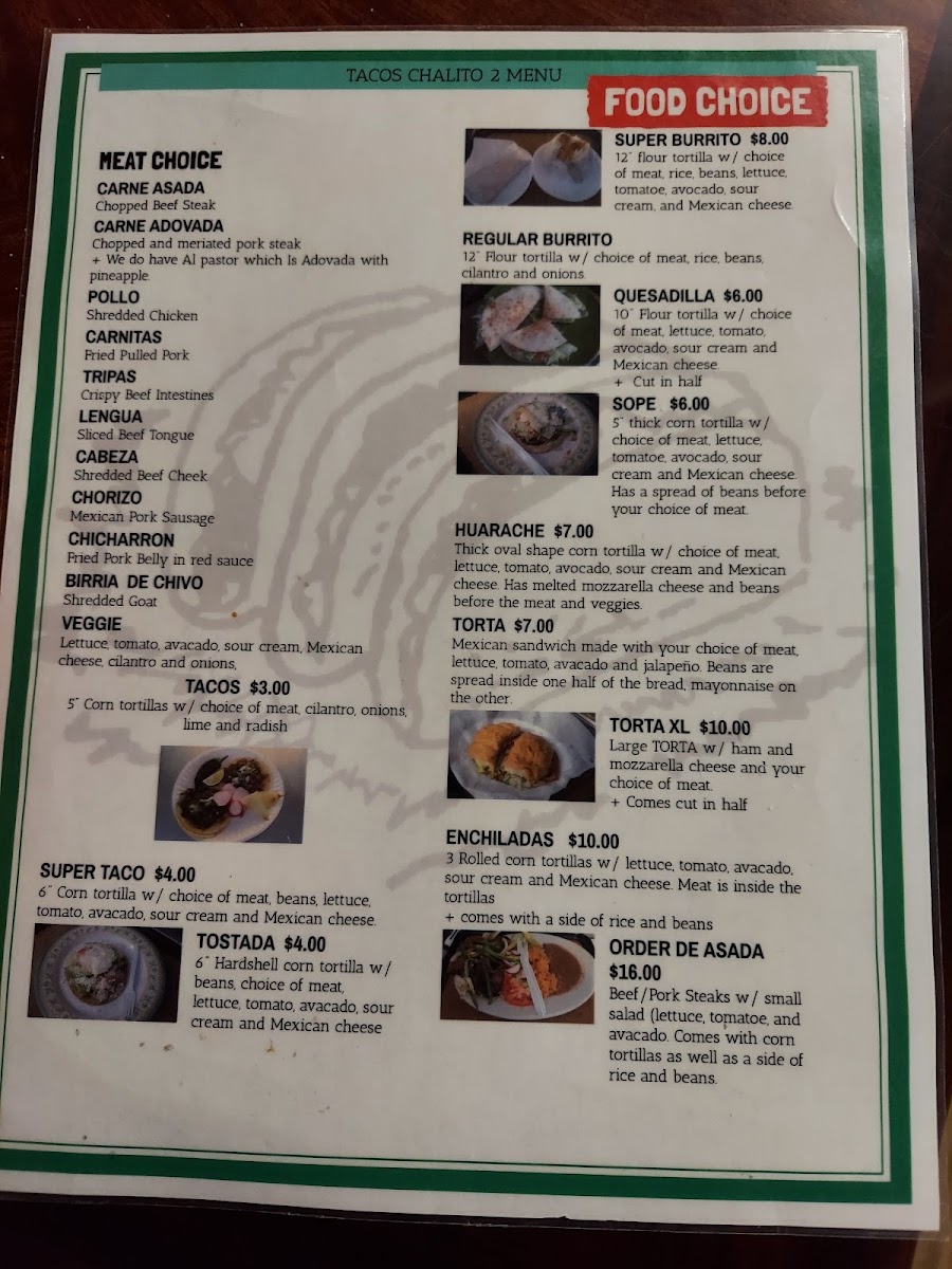 Tacos Chalito 2, located at 601 W University Way, Ellensburg, WA 98926, offers a vibrant and satisfying menu that brings together authentic Mexican flavors at affordable prices. Whether you're a meat lover or someone who enjoys a mix of flavors, this restaurant has something for everyone.