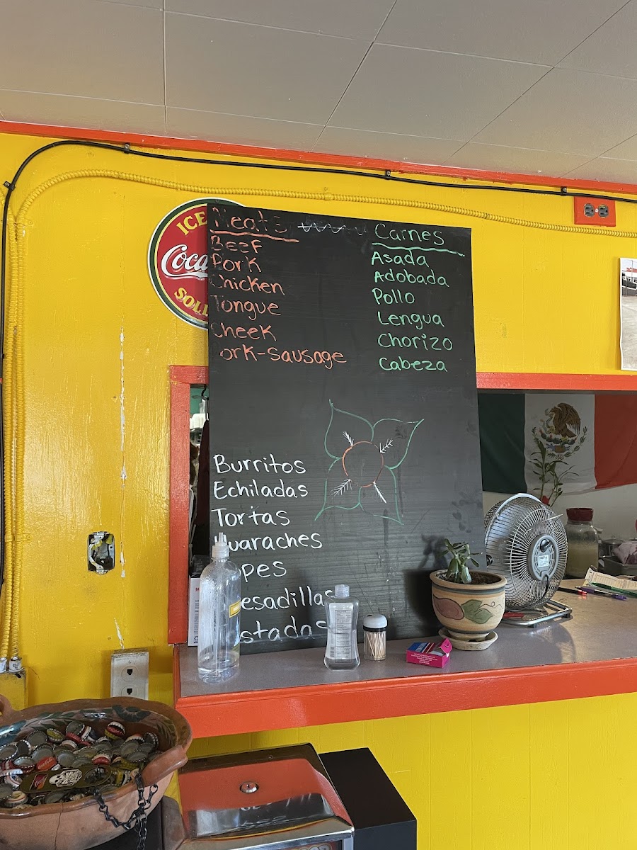 5” thick corn tortilla w/ choice of meat, lettuce, tomato, avocado, sour cream and cheese. Has a spread of beans before your choice of meat